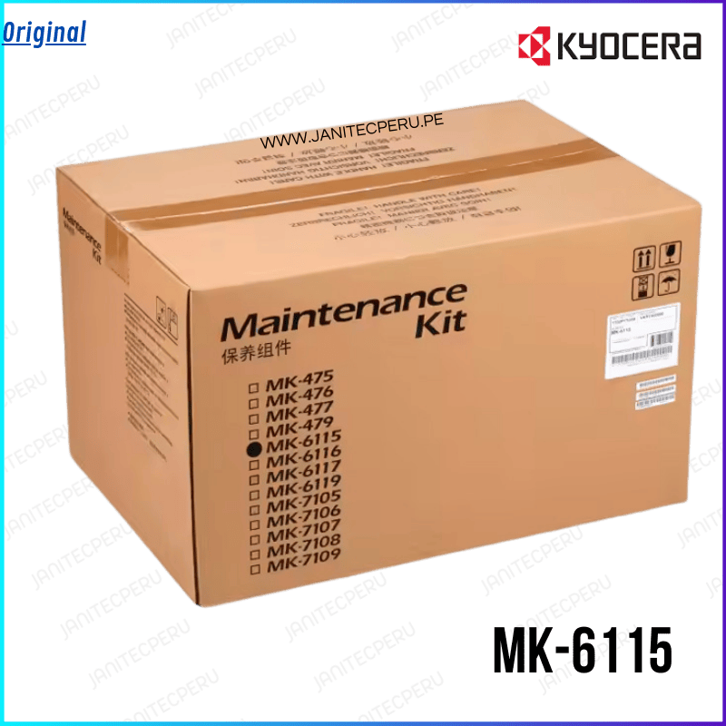 El Kit de Mantenimiento Kyocera MK-6115 es un conjunto de componentes originales diseñado para garantizar el óptimo funcionamiento y prolongar la vida útil de las impresoras Kyocera, específicamente los modelos ECOSYS M4125idn y M4132idn. 1702P18NL0.